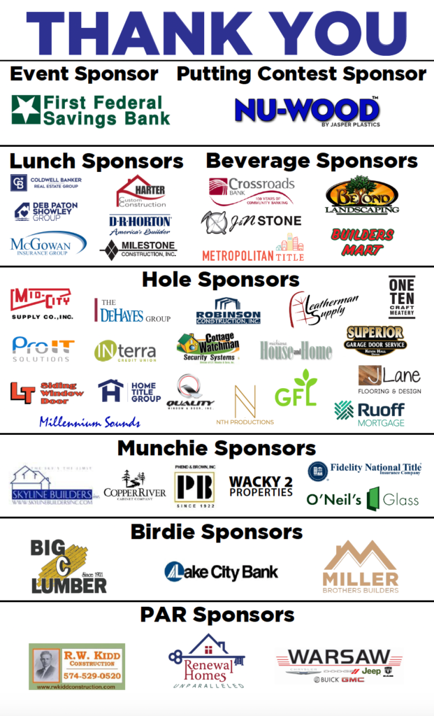 Each year, the Builders Association of North Central Indiana’ Coats for Kids Community Outreach Golf Outing directly impacts the lives of children from nineteen (19) area grade schools within Kosciusko, Fulton, and Whitley Counties. Since 1996, BANCI – through the generous contributions of its Coats for Kids Community Outreach Golf Outing Sponsors and Tournament Registrants – has purchased 6,775 Coats for Kids of families in need.